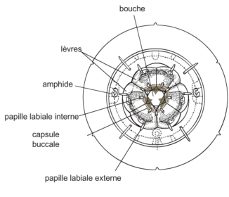 Cette photo en microscopie électronique à balayage montre un agrandissement de la bouche. La bouche ici, vous le voyez, est entourée de 3 lèvres charnues, qu'il ne faut pas confondre avec des ventouses.