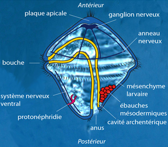 Cette larve trochophore (c'est-à-dire qui porte une roue de cils), on la retrouve plus ou moins modifiée chez un bon nombre d'Invertébrés marins.