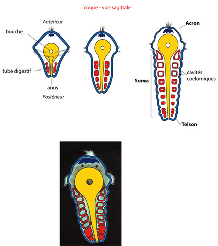 Dans la suite du développement de cette larve, l'évolution des sacs cœlomiques va entraîner des conséquences très importantes pour l'anatomie de l'animal.