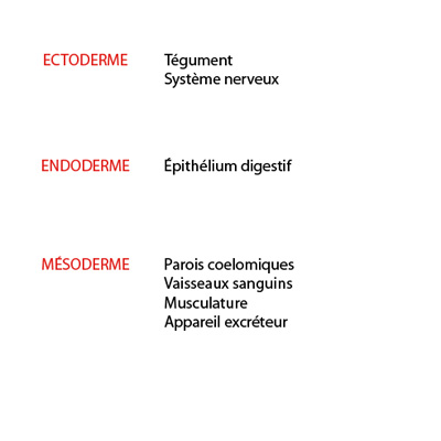 A la bouche et à l'anus, deux invaginations ectodermiques sont venues à la rencontre des parois antérieure et postérieure endodermiques de la cavité archentérique.